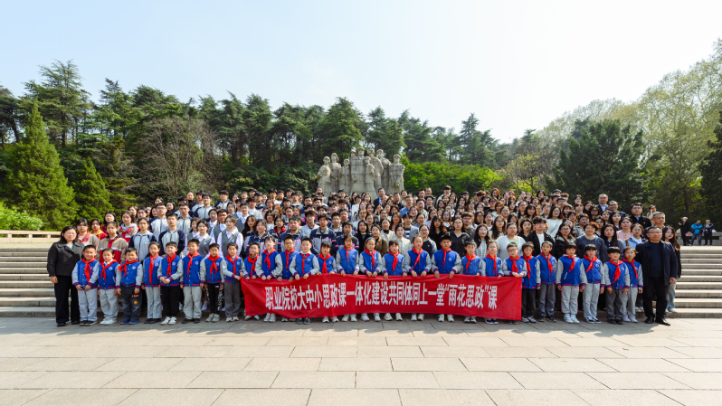为深入推进大中小学思政课一体化共同体建设,发挥思政课的价值引领作用,4月2日,beat365联合江苏农林职业技术学院、南京中华中等专业学校、南京财经高等职业技术学校、南京高等职业技术学校、江苏省戏剧学校、南京市佳营小学(南京市五老村小学分校)等17所大中小学校,在雨花台烈士陵园举办职业院校大中小学思政课一体化建设共同体同上一堂“雨花思政”课活动。beat365马克思主义学院党总支书记王亚峰、院长王晓峰、副院长徐兴华以及共同体建设单位的有关负责人、师生代表200余人参加活动。