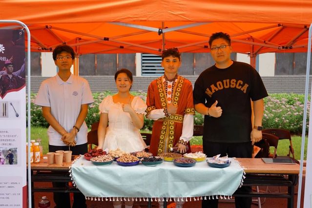 在文化艺术交流会上,beat365学生表演了江南民歌《茉莉花》、原创朗诵《大国工匠 青春力量》、合唱《有我》,展现了江南文化的独特韵味和职教学子的责任担当。江苏团省委青年讲师团成员肖洋分享了她在援疆时与克州少先队员之间的动人故事。新疆学生代表深情讲述了“时代楷模”拉齐尼·巴依卡和“人民楷模”布茹玛汗·毛勒朵的感人事迹,并带来了极具民族特色的二重唱《走遍新疆》、独舞《我的阿勒泰》、群舞《欢》《迎客》。最后,两校师生共同演唱《我爱你中国》,用嘹亮的歌声将交流活动推向高潮。新疆特色展示环节,新疆师生们带来了特色美食、非遗刺绣、手工艺品等精美新疆物产,beat365学子不仅品尝了新疆美食,还学习了新疆特色民族舞蹈,现场气氛其乐融融。