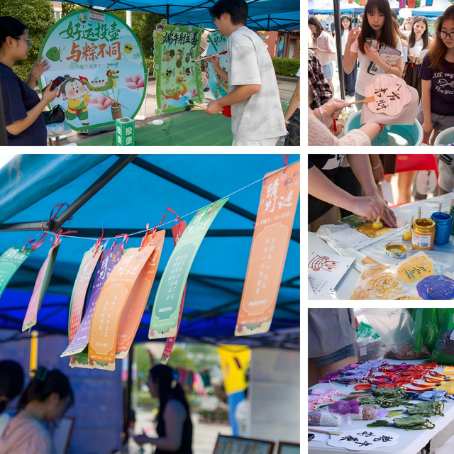 5月28日,艺术设计学院在天堂校区综合楼前广场举办了“端阳雅集”游园会,织就了一幅“非遗可触、文脉可感”的文化长卷,是一场“可游、可赏、可玩”的文化盛宴,一场跨越时空的文化对话,展示了艺术学子在传承和弘扬中华优秀传统文化上的青年担当。
