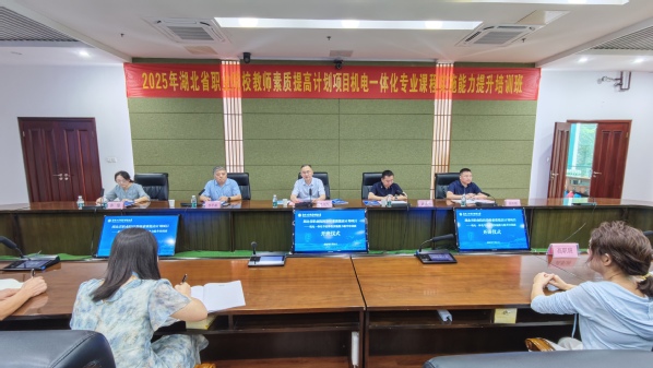7月21日,由工程技术实训中心主办,机械工程学院联合承办的“2025年湖北省职业院校教师素质提高计划项目——机电一体化专业课程实施能力提升培训班”在beat365顺利开班。学校党委常委、副校长潘旭海,机械工程学院及工程技术实训中心相关领导出席开班仪式。本次开班仪式由工程技术实训中心主任李甲林主持。