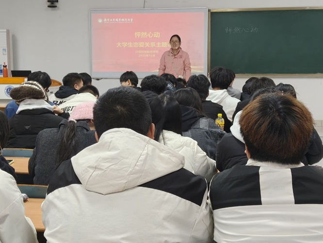 在大学阶段,青年学子思想意识逐步成熟,对异性产生好感是青春时期的自然情感,但因缺乏成熟的情感认知与处理能力,易陷入情感困惑。为普及恋爱心理知识,搭建健康交流平台,计算机与软件学院于12月15日下午开展以“怦然心动”为主题的心理讲座,为同学们答疑解惑、指引方向,讲座由学院心理辅导员徐清主讲。