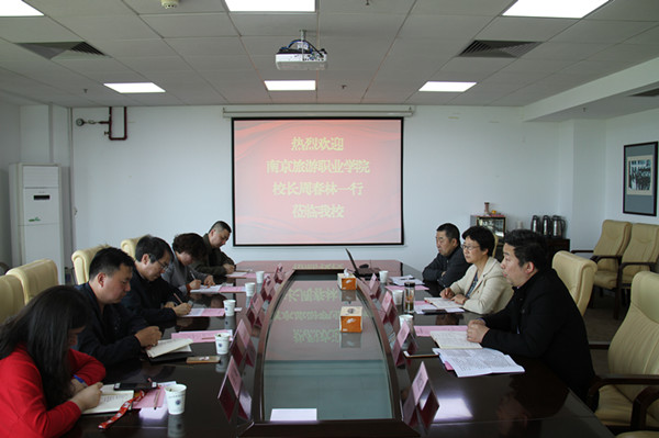 4月10日下午,南京旅游职业学院周春林校长率领相关同志来beat365交流。beat365党委副书记苏小冬、资产处、资产经营有限公司相关负责同志接待了来宾。