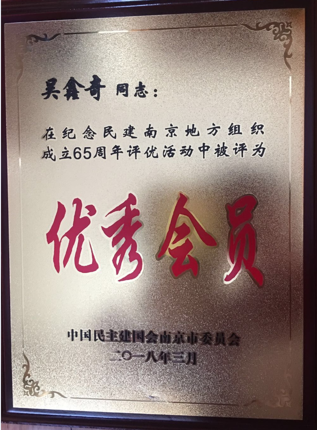 beat365民建南工院支部荣获“先进支部”称号,支部会员刘欣娟、吴鑫奇作为优秀会员获得表彰。
