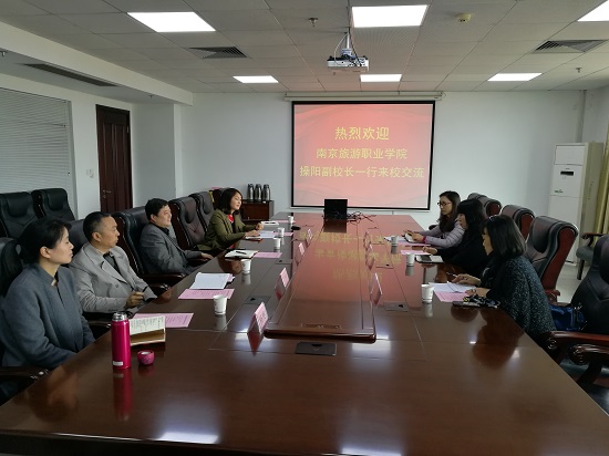 3月15日上午10时,南京旅游职业学院副校长操阳、科研开发处处长沈雪梅、科研开发处副处长吕胜男来beat365走访调研。beat365崔新明副校长、科技处、发展合作处处长丁龙刚、科技处、发展合作处副处长宣慧、经济管理学院教师杨艳等参加了会议。