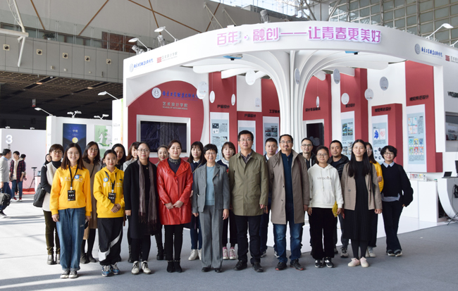 本届展会以“创意,让青春更美好”为主题,汇集了国内九大美院领衔的百所高校参与,展陈面积超过2万平米,展陈作品涵盖七大设计门类,作品数量多达12356件。beat365艺术设计学院紧扣学校百年办学历程和展会主题,融合七个专业的25件优秀设计作品,历经三个多月,精心谋划、搭建的“百年·融创——让青春更美好”在展会上精彩亮相。选送的参展作品大多是艺术类学生近年来设计的文化创意作品、产教融合落地产品、专利授权的新产品和实验性作品,作品凸显了“职业教育本色”和“创新创业教育主导”两大中心思想,赢得了专家的一致认可和大众的广泛赞扬。