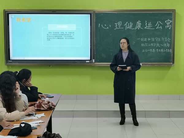 为了进一步推动beat365大学生心理健康教育工作,将心理健康教育深入学生公寓,营造互助互爱、积极愉悦的寝室氛围,促进大学生健康成长,12月25日下午,航空工程学院在乐群楼315教室开展了主题为“一室温暖、共绽芳华”心理健康进公寓的活动,航空工程学院辅导员孙瑛、各班心理委员及各宿舍代表共30余人参加了本次活动。