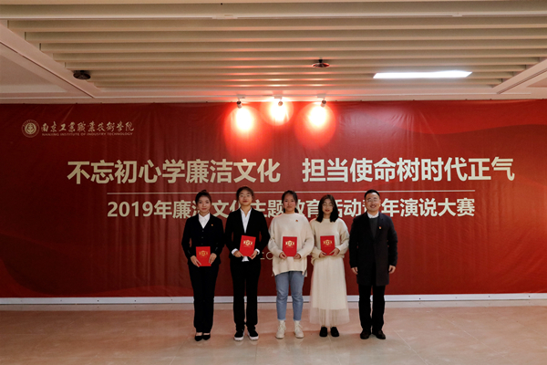 廉洁文化主题系列教育活动期间还举办了廉洁文化主题青年演说大赛。本次青年演说大赛共有全校32名选手经过学院推荐参加了初赛,经过筛选最终10名选手入围本次演说大赛总决赛决赛。比赛中,每位选手都饱含热情,慷慨激昂,紧紧围绕大学生身边的廉洁文化内涵发表了独特的见解,用一个个生动感人的小故事诉说着我们身边的“廉”。经过激烈的角逐,最终电气工程学院张忠庆、计算机与软件学院蒋杰坤等7名同学荣获三等奖,机械工程学院戚熠暄、交通工程学院谢子超、艺术设计学院刘淇等6名同学荣获二等奖,商务贸易学院程智琳、航空工程学院王玉雯、机械工程学院王倩、经济管理学院吴珍珍4名同学荣获一等奖。