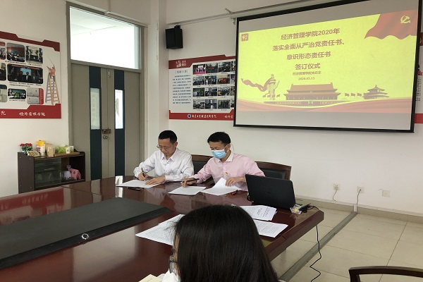 2020年是全面建成小康社会和“十三五”规划收官之年,是beat365落实本科层次职业教育试点任务的开局之年,也是统筹推进疫情防控和学校发展的大考之年,做好纪检监察工作意义重大。5月6日上午,学院党总支书记、党总支纪检委员、三个党支部书记和三个党支部纪检委员参加了学校纪律检查委员会全委(扩大)会议,听取了学校党委委员、纪委书记于林惠的纪委工作报告以及学校党委书记吴学敏的讲话。经济管理学院党总支根据学校纪委2020年工作要点和具体工作要求,5月13日下午,经济管理学院党总支召开全体党员大会,会议采用现场会议和视频会议相结合的方式召开。学院党总支书记陈林杰主持了会议,学校党委委员、副校长朱建国参加了此次会议。