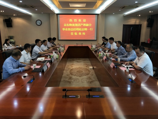 6月3日上午,京东物流集团产教融合事业部总经理赵志刚、华东大区产业平台总经理张延龙一行来访beat365。党委副书记、校长谢永华、党委委员、副校长崔新明,科技处、商贸学院负责人及教师代表出席了会议。