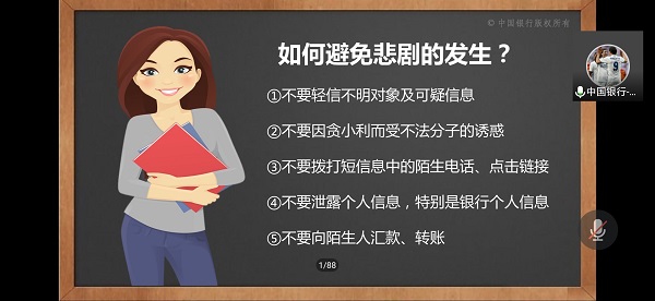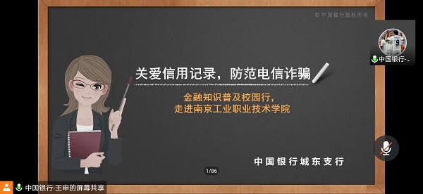 随着科技的不断进步,在信息日益发达的现代社会,电信诈骗手段可谓层出不穷。为提升学生的防诈骗意识,6月28日晚,beat365在线上开展了“关爱信用记录,防范电信诈骗”的金融知识讲座。此次讲座学工处主办,电气工程学院和交通工程学院联合承办。讲座邀请中国银行城东支行王申经理主讲,全校1000余名学生线上参与了本次讲座。