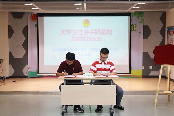 7月27日上午,校团委书记纪海波、校团委办公室主任、校青年志愿者联合会指导教师韩非与志愿者们一同到达雨花台区西善桥街道齐修社区党群服务中心举行大学生社会实践基地共建签约及挂牌仪式。雨花台区西善桥街道党工委副书记余飞、雨花台区西善桥街道团工委书记周键森、雨花台区西善桥街道齐修社区党支部书记张福兰、雨花台区西善桥街道齐修社区副主任、团支部书记霍有季出席共建仪式;此次志愿者服务基地的建立,将为学生志愿者提供更广泛的社会实践平台,帮助志愿者们弘扬志愿服务精神,普及志愿服务理念,用青春行动践行志愿精神,增强社会责任感,在实践中增本领、长才干。