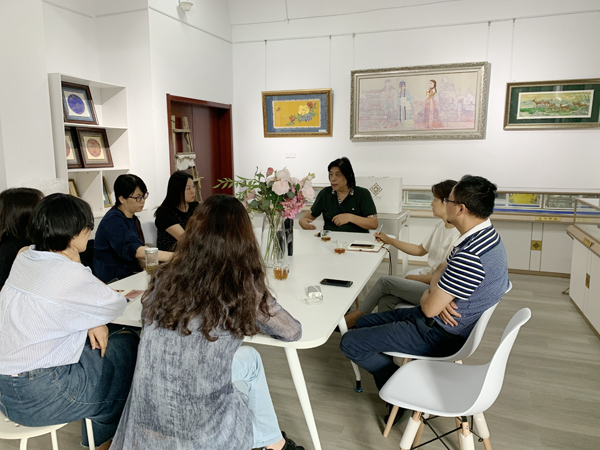 开学第一周,艺术设计学院专门召集教学部主任召开科研工作会议,要求每个教学部要成立以博士与高级职称教师领衔的科研创新团队。9月11日下午室内设计专业的"非遗文创科研创新团队"与beat365“金文云锦大师工作室”进行交流座谈,主要围绕人才培养,课程规划,项目合作与大赛指导进行了深度探讨,并初步确定了近期要开展的相关合作事宜,双方一致同意将围绕"南京云锦"开展系列专场讲座、师生实操能力培训、项目合作等各项对接工作。