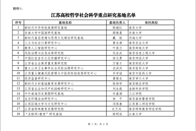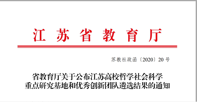 江苏高校哲学社会科学重点研究基地由江苏省教育厅遴选设立,围绕哲学社会科学重点领域、前沿热点问题和国家特别是我省经济社会发展战略需求开展高水平学术研究和高层次应用对策研究的研究机构,代表省内高校哲学社会科学平台建设的较高水平。