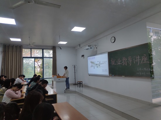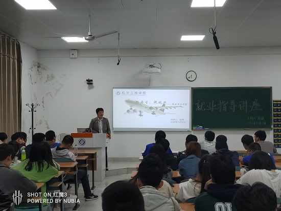 10月9日在求真楼211教室召开应用电子技术和无人机应用技术两个专业的毕业生就业指导讲座,航空工程学院副院长张琪担任主讲。
