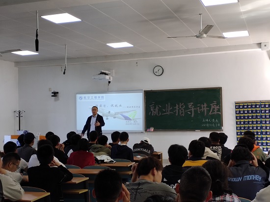 10月7日,航空工程学院党总支副书记、院长黄杰在求真楼204教室为学院2018级飞机机电设备维修、飞机电子设备维修、飞行器制造专业毕业生开展了就业指导专题讲座。