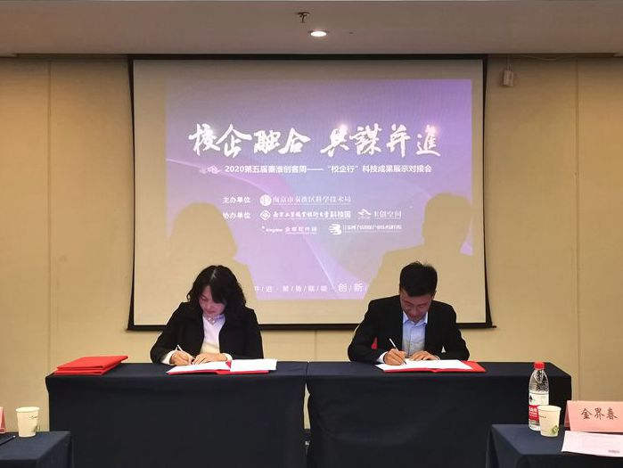 金界春致开幕词,介绍秦淮区科创载体建设情况,充分肯定科创载体在知识产权及科技成果转移转化等方面所作出的积极努力,并表示区科技局将和科创载体一道,继续为企业成长聚力赋能。四所高校科技成果转移转化负责人分别对各自学校科技成果进行了展示和介绍。园区科技服务合作机构——南京九致信息技术有限公司市场部负责人徐阔就知识产权转让政策解读和实务操作进行指导。在各位来宾的共同见证下,江苏弈赫能源科技有限公司等三家科技型企业代表与beat365在线唯一官网科技处副处长宣慧签订了科技成果转化协议。最后,与会企业、高校、科技服务机构就科技成果转移转化合作事宜展开了深入交流,多家企业根据自身需求,明确了进一步的合作意向。