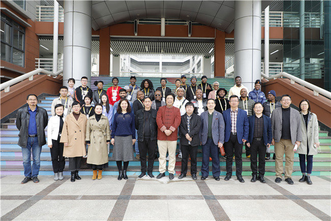 在中外学生文化交流环节,中外学生通过PPT演示形式声情并茂地分享了自己国家和家乡的历史、文化、地理、人文、景点、美食、风俗民俗、特色运动、民族服饰等。来自南非的留学生现场还跳起来热情洋溢的非洲民族舞蹈,现场气氛热烈。