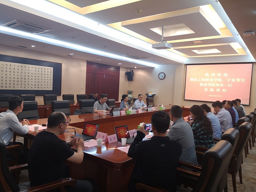 5月7日下午,湖北工程职业学院副院长陈彪彪、宁夏警官职业学院信息中心主任杨建平一行来beat365考察调研智慧校园与校园网络建设。党委常委、副校长苏小冬,以及校长办公室、信息化建设与管理处等部门负责同志在行政楼辅楼一楼会议室接待了来宾。