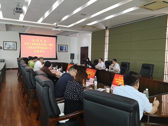 5月18日上午,常州工业职业技术学院副书记毛伯民、湖南工业职业技术学院副校长蒋建国一行来beat365考察调研。党委常委、副校长潘旭海,以及人事处、科技处、发展合作处、国际交流与合作处等部门负责同志在行政楼辅楼二楼会议室接待了来宾。