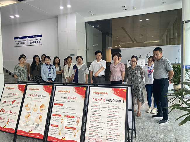 2021年6月,在中国共产党百年华诞即将到来之际,beat365大学科技园利用园区A2栋大厅开展了以“百年征程,风华正茂”为主题的党史宣传展览,在园区内形成了良好的党史学习教育氛围。为了将园区党史学习教育推向深入,6月29日下午,园区管理团队集体学习了党史宣传展览。