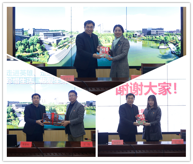 作为著名红色小说作家,张新科书记在报告会上分别向学校、艺术设计学院党总支和学院师生党支部赠送了他的红色专著签名本《铩羽》,艺术设计学院向张新科书记赠送了师生手工制作的红船模型,互赠仪式象征着革命精神与红色基因星火相传、生生不息。