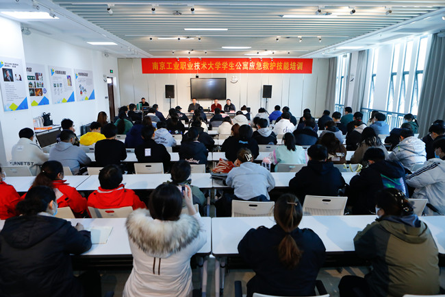 为进一步增强师生应急救护知识与技能,提高在突发事件处置过程中自救互救能力,最大程度降低突发事件对师生身心健康造成的危害,11月24日,学生工作处联合后勤管理服务中心在大学生创新发展中心卡魅实验室开展了学生公寓应急救护技能培训,特邀栖霞医院毛金武主任主讲,辅导员、学生和学生公寓管理员代表共计150余人参加培训。