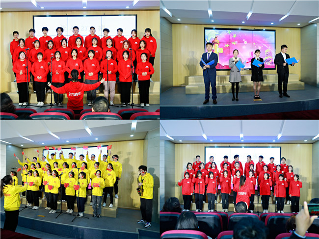 在前期各班级合唱视频初赛基础上,共有六支演唱队伍进入合唱总决赛,每支参赛队伍演唱两首曲目,包括《中华职业学校校歌》和一首自选红色经典歌曲。合唱队同学们着统一服装,个个青春昂扬、精神饱满,同学们歌唱祖国、祝福祖国,感悟黄炎培先生职业教育理念,以嘹亮的歌声表达浓浓的爱国爱校之情,放声歌唱心中的美好憧憬。演出队伍独具匠心的表演形式和扣人心弦的歌声展现出新时代青年积极进取的精神风貌,赢得现场师生们热烈的掌声。尾声时,辅导员与学生代表共同演绎了诗朗诵《读中国》,慷慨激昂的朗诵深深打动了每一位观众。经过激烈角逐,产设2124班荣获一等奖、产设2141班、环艺2111班荣获二等奖、动漫2113班、数媒2111班、环艺2013班荣获三等奖,产设2124班阮艺同学荣获优秀指挥员称号。