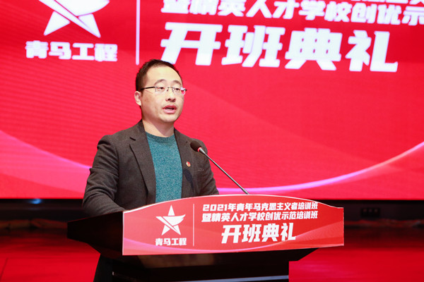 开班典礼上,王伟代表学校党委对“青年马克思主义者培养工程”新一期培训班的成功举办表示热烈的祝贺,并对青马班学员提出希望与要求:一是坚定理想信念,做马克思主义的坚定信仰者;二是增强理论自信,做马克思主义的模范践行者;三是发挥表率作用,做马克思主义的积极传播者。最后,王伟希望大家学党史、强信念、跟党走,树立远大理想引领爱国之志;担当时代责任诠释爱国之情;练就过硬本领支撑爱国之行;锤炼品德修为涵养爱国之心。与时代共奋进、与学校同发展,做社会主义核心价值观的践行者、黄炎培职业教育思想的弘扬者、科学文化知识的传播者和优良校风学风的维护者,成为德智体美劳全面发展的社会主义合格建设者和可靠接班人,用智慧和力量,奋力谱写精彩的青春篇章。