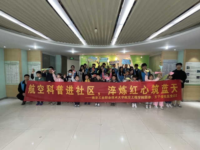为深入学习贯彻习近平新时代中国特色社会主义思想,积极推动“双百共建”工程,发挥学院专业优势,5月7日上午,航空工程学院团委联合学院党委师生第二党支部带领青年师生前往尧化街道王子楼社区开展“航空科普进社区,淬炼红心筑蓝天”主题活动,活动涵盖了红色精神宣讲、航空知识科普、纸质飞机模型制作等内容。