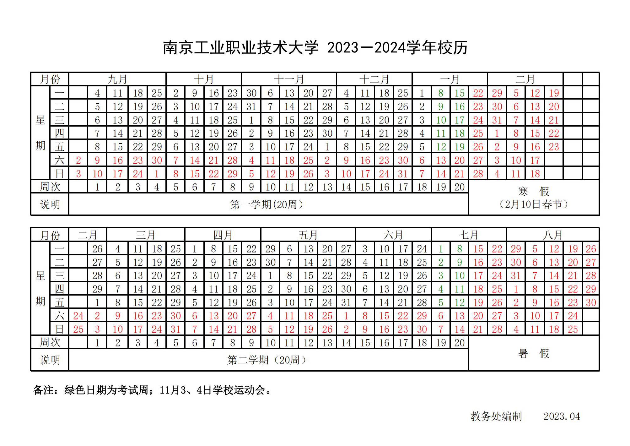 2023-2024学年校历