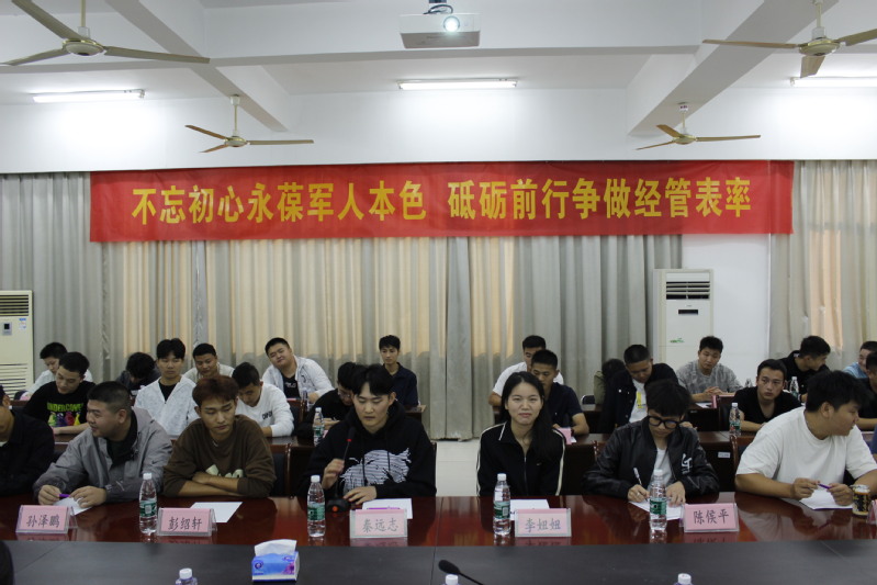 为深入了解退役大学生士兵的思想动态和学习情况,指导他们成长成才和全面发展,10月11日下午,经济管理学院于乐业楼302会议室举行“不忘初心永葆军人本色,砥砺前行争做经管表率”退役大学生士兵座谈会,学院党委副书记、院长徐洪波,党委副书记、副院长常敏,工程管理系主任梁慷老师,教学办胡朴老师,全体辅导员及34名退役大学生士兵代表参加,会议由学工办主任严潇睿主持。