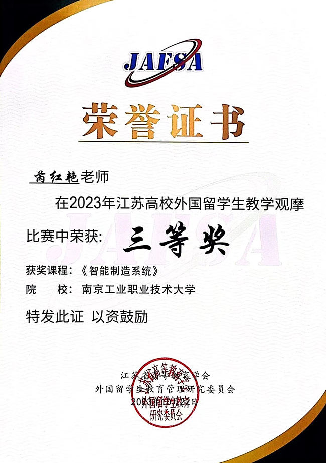 “江苏高校外国留学生教学观摩比赛”由江苏省教育厅指导、江苏省高等教育学会外国留学生教育管理研究委员会主办。大赛的交流和学习为全英文课程建设提供了参考范式,激发了教师开发高质量全英文课程的主动性和积极性,推动了全校外国留学生教学质量的提升。
