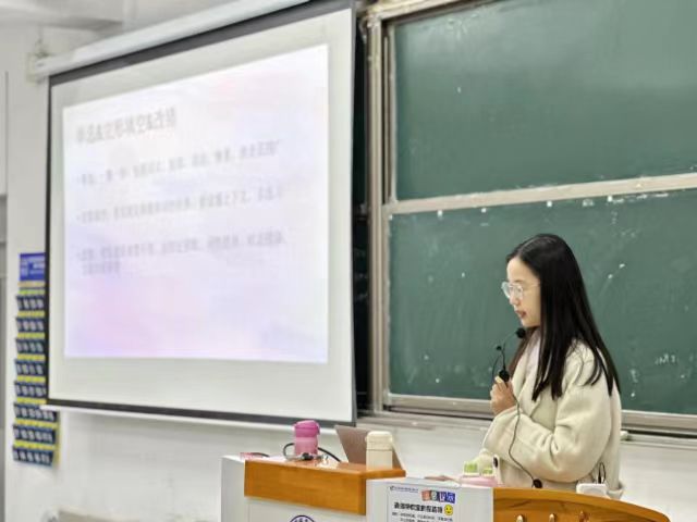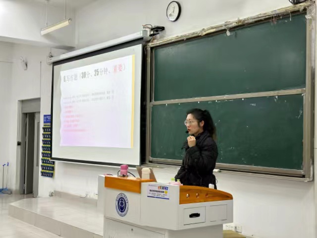 该项竞赛负责人、大学英语教研室刘澍芃老师详细介绍了“全国大学生英语竞赛”的赛制、参赛流程、题型以及奖项设置,强调此次竞赛不仅考察学生的语言知识和技能,更注重培养其跨文化交际能力和创新思维,鼓励大家积极参与,以赛促学,以学促用。
