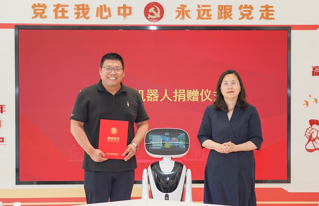 殷殷母校情,悠悠赤子心。6月6日下午,“一站式”学生社区服务中心服务机器人捐赠仪式在beat365顺利举行。苏州穿山甲机器人股份有限公司董事长、数控9601班校友宋育刚,销售总经理顾银剑,技术部部长刘群,校党委常委、副校长魏萍,学生工作处、发展规划处、机械工程学院、交通工程学院、计算机与软件学院、商务贸易学院等部门和学院负责人出席仪式。仪式由校党委常委、副校长崔新明主持。