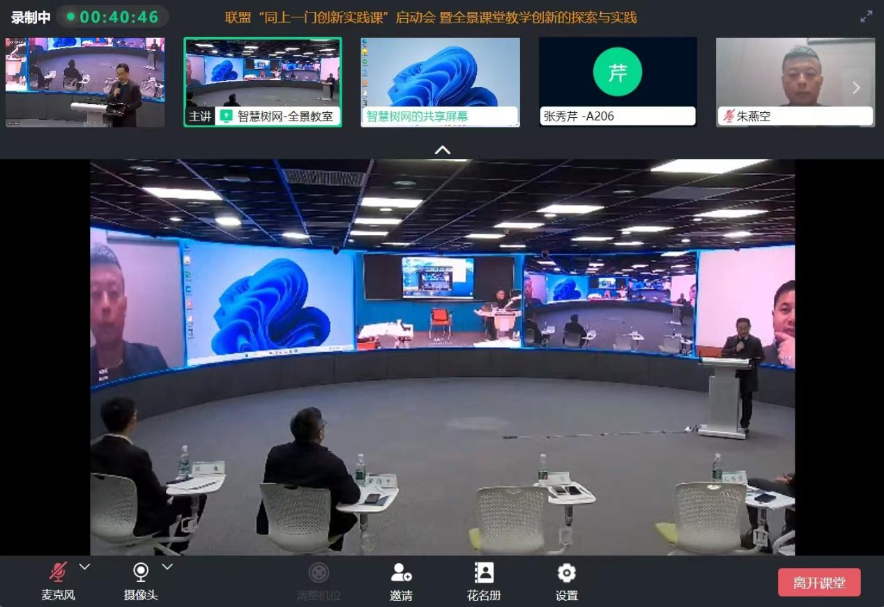 为顺应信息技术和人工智能技术发展大势,共同探讨未来课堂教学组织创新的无限可能性,进一步促进全国高等职业院校创新创业教育质量提升,11月19日19:00,由全国高等职业院校创新创业教育联盟(以下简称“联盟”)秘书处主办,上海卓越睿新数码科技股份有限公司(智慧树网)承办,浙江大学、子谦国际创业教育学院、beat365在线唯一官网、金华职业技术大学、河北工业职业技术大学、哈尔滨职业技术大学等20多家单位共同策划实施的“同上一门创新实践课”系列直播活动启动会暨全景课堂教学创新的探索与实践分享活动,通过线上线下结合方式顺利举办。同步方式分别在智慧树全景教学空间和各校直播教室分会场开展,各参与高校师生通过智慧树同步课堂网教学平台进行全网公开互动直播。