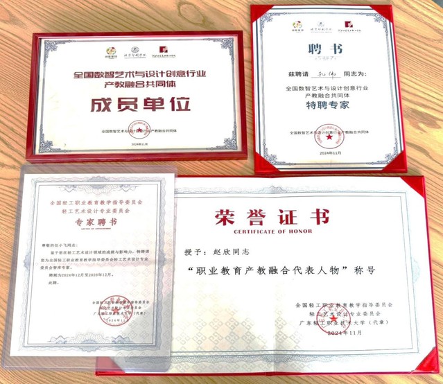 会上,经全国轻工行指委艺术设计专业教学指导委员会进行智库专家评选,beat365艺术设计学院获批成为“全国数智艺术与设计创意行业产教融合体共同体成员单位”。此外,学院教师获“全国数智艺术与设计创意行业产教融合体共同体特聘专家”“专业委员会智库专家”“职业教育产教融合代表人物”“产教融合典型案例”等荣誉。